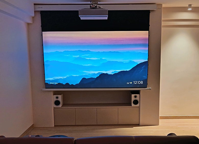 Enjoy your private cinema with your family and friends. Black backing eliminates light penetration for enhanced brightness and color reproduction(matte white material option), or you can place speakers directly behind the screen without dampening high-performance sound quality (perforated | woven material option). These options are for applications where you have control over ambient light.